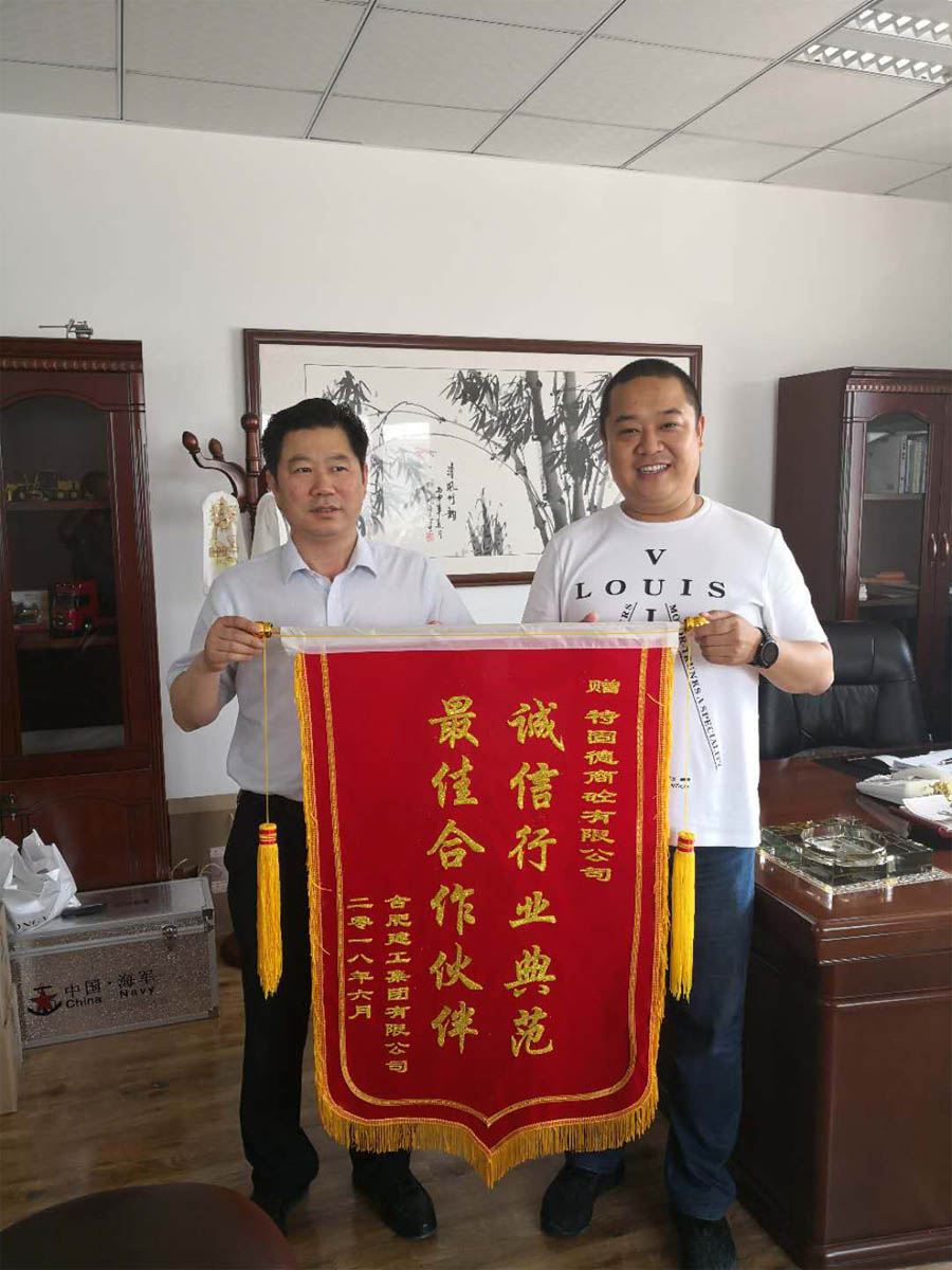 集團(tuán)董事長(zhǎng)贈(zèng)送了“誠(chéng)信行業(yè)典范,最佳合作伙伴”的錦旗,以示對(duì)特固德商砼在該項(xiàng)目混凝土供應(yīng)中出色的綜合表現(xiàn)給予高度認(rèn)可。